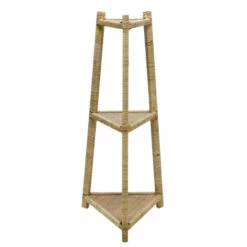 Buy 🤩 Sagebrook Home Wood, Rattan 37″ Corner Triangle Shelf, Brown 37.0″H – 16.0″ X 14.0″ X 37.0″ 🔥