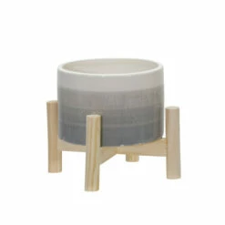 Buy 😍 Sagebrook Home 6″ Ceramic Planter With Wood Stand, Beige Mix 7″H – 6.0″ X 6.0″ X 7.0″ 👏