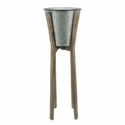 Outlet 🎁 Sagebrook Home 10″ Planter With Wood Stand, Lt. Blue 8.0″H – 10.0″ X 10.0″ X 8.0″ 🔥