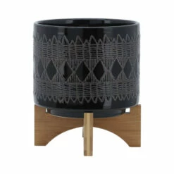 Outlet ✨ Sagebrook Home 8″ Ceramic Chevron Planter With Wood Stand, White 9″H – 8.0″ X 8.0″ X 9.0″ 🌟