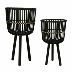 Outlet ❤️ Sagebrook Home 8″ Striped Planter With Wood Stand, Orange 6″H – 8.0″ X 8.0″ X 6.0″ 😀