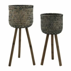 Promo 👏 Sagebrook Home Set Of 2 Bamboo Planters On Stands 23.0″H – 11.5″ X 11.5″ X 23.0″ ⌛