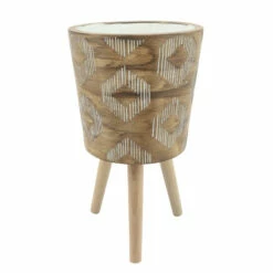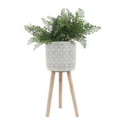 Promo 💯 Sagebrook Home Ceramic 8″ Flower Pot Withwooden Stand 9.0″H – 8.5″ X 8.5″ X 9.0″ 🥰