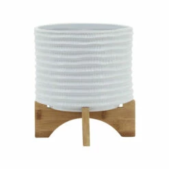 Promo 👏 Sagebrook Home 8″ Textured Planter With Stand, White 7.0″H – 8.0″ X 8.0″ X 7.0″ 😍