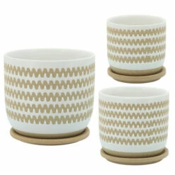 Top 10 🛒 Sagebrook Home 8″ Zig-zag Planter With Saucer, White 7″H – 8.0″ X 8.0″ X 7.0″ 🛒