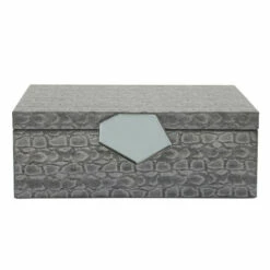 Best Sale 🎁 Sagebrook Home Wood 14″ Faux Leather Box, Gray 5.0″H – 14.0″ X 10.0″ X 5.0″ ⌛