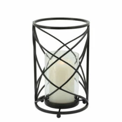 Flash Sale 👏 Sagebrook Home Metal 10″ Hurricane Candle Holder, Black 10.0″H – 6.0″ X 6.0″ X 10.0″ 😍