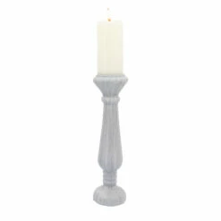 New 🎉 Sagebrook Home Ceramic 15″h Candle Holder, Scratched, Silver 15.0″H – 4.0″ X 4.0″ X 15.0″ 🎁