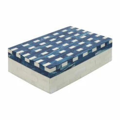 Top 10 โญ Sagebrook Home Resin Set Of 2 Plaid Boxes, Blue 4.0″H – 12.0″ X 8.0″ X 4.0″ ๐