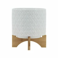 Best deal ๐ Sagebrook Home 8″ Diamond Planter With Stand, White 7.0″H – 8.0″ X 8.0″ X 7.0″ ๐