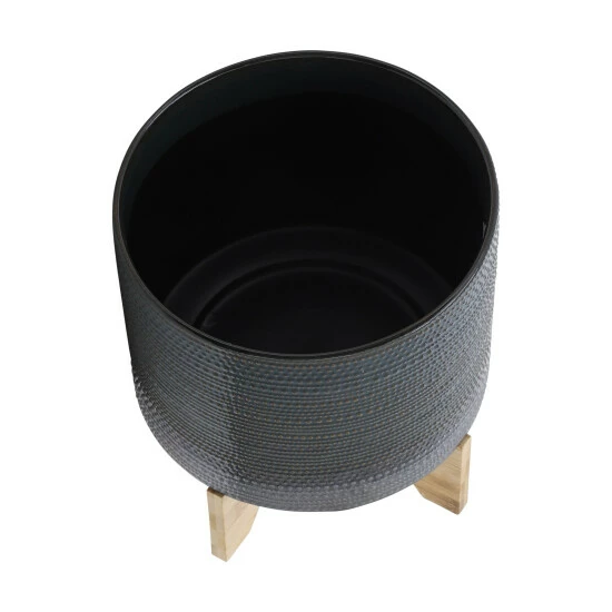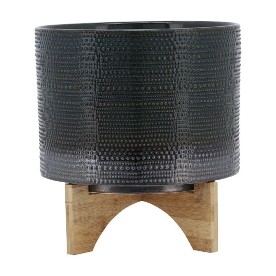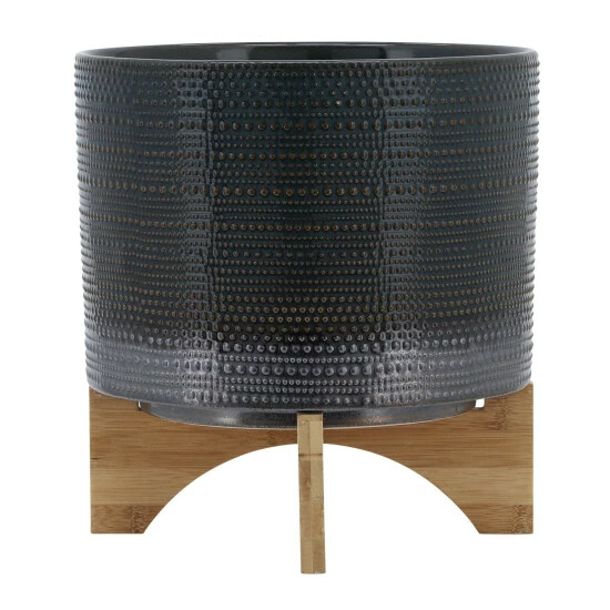 Looking for contemporary and simple planters? This stylish planter with stand is just the right fit to your home. The planter is constructed from high-quality ceramic, with a green and brown hue and dotted design on the outside.Sagebrook Home has been formed from a love of design, a commitment to service and a dedication to quality. They create and import fashion forward items in the most popular design styles. Backed with years of experience in the textile field, They are now providing a complete Home decor story. the combination of wall decor, furniture, lighting and Home accessories are all coordinated with textiles to provide a complete Home look. Sagebrook Home is committed to providing the best Home dรฉcor and accent pieces at value prices. Item Dimensions:11x11x11/Planter 1 Only Dims:11x11x9/Color: Green Materials: Ceramic, Bamboo Wood Category: Outdoor Decor, Planters Product Theme/Style/Trend: Contemporary Country Of Manfacture: Cn