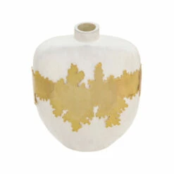 This modern vase features beautiful glass body with an elegant touch of gold abstract stripe. A stunning design that will bring elegance, glamour and charm to any home interior. The gold metal band will bring warm colors to the rooms color palette.Sagebrook Home has been formed from a love of design, a commitment to service and a dedication to quality. They create and import fashion forward items in the most popular design styles. Backed with years of experience in the textile field, They are now providing a complete Home decor story. the combination of wall decor, furniture, lighting and Home accessories are all coordinated with textiles to provide a complete Home look. Sagebrook Home is committed to providing the best Home dรฉcor and accent pieces at value prices. Item Dimensions:9x5x10/Color: White Materials: Glass, Glass, Brass Category: Vases And Jars, Vases Product Theme/Style/Trend: Contemporary Country Of Manfacture: In