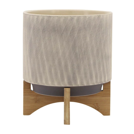 Enjoy earthy tones in your home with a stunning addition to your planter collection. This planter is all about natural tones, enhanced by a wooden stand that adds height to any plant displayed. Featuring an impeccable mesh pattern painted onto the tan finish, to give it an additional geometric touchSagebrook Home has been formed from a love of design, a commitment to service and a dedication to quality. They create and import fashion forward items in the most popular design styles. Backed with years of experience in the textile field, They are now providing a complete Home decor story. the combination of wall decor, furniture, lighting and Home accessories are all coordinated with textiles to provide a complete Home look. Sagebrook Home is committed to providing the best Home dรฉcor and accent pieces at value prices. Item Dimensions:10x10x12/Color: Brown Materials: Ceramic Category: Outdoor Decor, Planters Product Theme/Style/Trend: Contemporary Country Of Manfacture: Cn