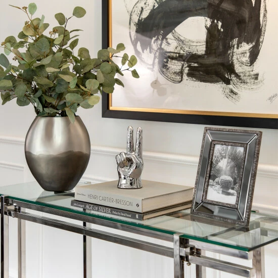 This decorative vase is a great way to bring additional style to you home decor. With a cut-off oval shape, this vase can add curves and color contrast to the table. With an impeccable silver finish that will compliment your decor and offer diverse way of use.Sagebrook Home has been formed from a love of design, a commitment to service and a dedication to quality. They create and import fashion forward items in the most popular design styles. Backed with years of experience in the textile field, They are now providing a complete Home decor story. the combination of wall decor, furniture, lighting and Home accessories are all coordinated with textiles to provide a complete Home look. Sagebrook Home is committed to providing the best Home dΓ©cor and accent pieces at value prices. Item Dimensions:9x5x11/Color: Silver Materials: Aluminum, Aluminum Category: Vases And Jars, Vases Product Theme/Style/Trend: Transitional Country Of Manfacture: In