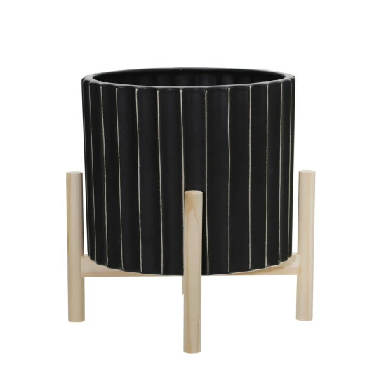 The pots are gorgeous, lightweight and elegant, and suitable for indoor and outdoor usage. You can also use the planter with or without the wooden stand. Add new life to your home and make any room look amazing.Sagebrook Home has been formed from a love of design, a commitment to service and a dedication to quality. They create and import fashion forward items in the most popular design styles. Backed with years of experience in the textile field, They are now providing a complete Home decor story. the combination of wall decor, furniture, lighting and Home accessories are all coordinated with textiles to provide a complete Home look. Sagebrook Home is committed to providing the best Home dΓ©cor and accent pieces at value prices. Item Dimensions:10x10x12/Planter 1 Only Dims:10x10x8/Color: Black Materials: Ceramic, Pine Wood Category: Outdoor Decor, Planters Product Theme / Style / Trend: Contemporary Country Of Manfacture: Cn