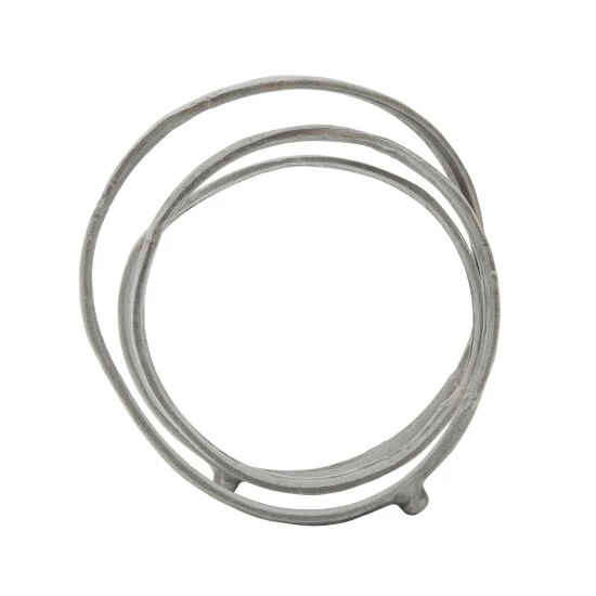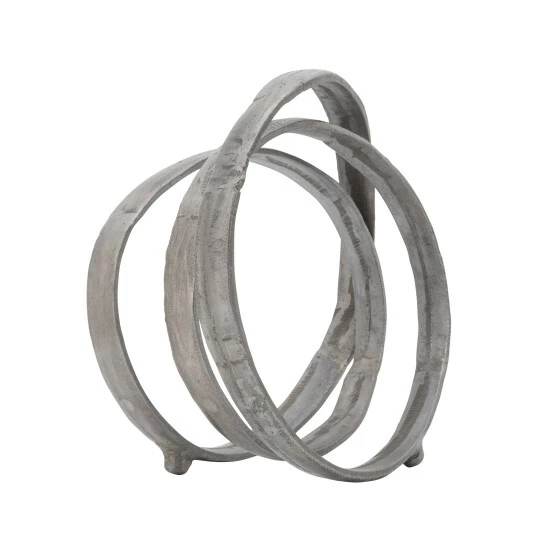 Make a style statement by adding this stunning ring sculpture to your home decor. A set of 3 entwined rings, self standing, to make it a perfect table center piece. Modern and sleek for a touch of soft curves and an impeccable finish. A sculpture that screams contemporary design.Sagebrook Home has been formed from a love of design, a commitment to service and a dedication to quality. They create and import fashion forward items in the most popular design styles. Backed with years of experience in the textile field, They are now providing a complete Home decor story. the combination of wall decor, furniture, lighting and Home accessories are all coordinated with textiles to provide a complete Home look. Sagebrook Home is committed to providing the best Home dรฉcor and accent pieces at value prices. Item Dimensions:12x7x12/Color: Gray Materials: Aluminum Category: Decorative Accessories, Decorative Objects Product Theme/Style/Trend: Contemporary Country Of Manfacture: In