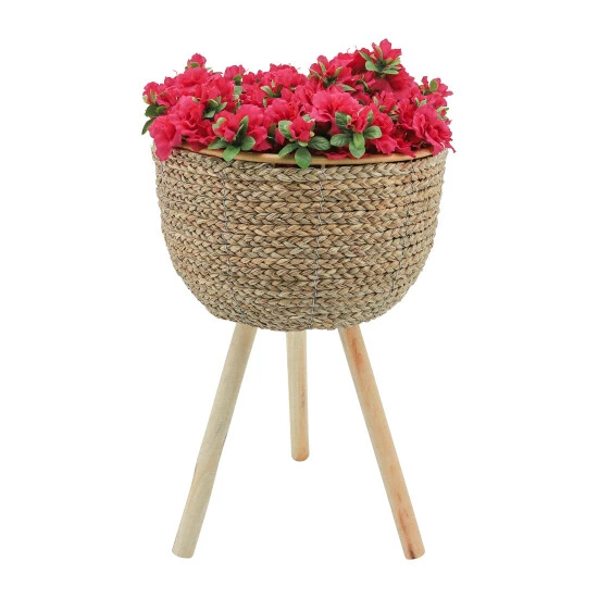 This wicker planter features a natural finish on the bamboo material and 3 legs that gives it substantial height. Making it the perfect addition to any home with an interest in natural design and style!Sagebrook Home has been formed from a love of design, a commitment to service and a dedication to quality. They create and import fashion forward items in the most popular design styles. Backed with years of experience in the textile field, They are now providing a complete Home decor story. the combination of wall decor, furniture, lighting and Home accessories are all coordinated with textiles to provide a complete Home look. Sagebrook Home is committed to providing the best Home dΓ©cor and accent pieces at value prices. Item Dimensions:14x14x22/Color: Brown Materials: Seagrass, Iron, Wood, Mdf Category: Outdoor Decor, Planters Product Theme/Style/Trend: Contemporary Country Of Manfacture: Cn