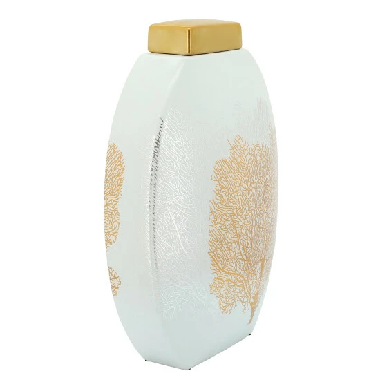 Decorate your space with this impressive ceramic jar. Featuring a nature inspired decal for a pop of color to match the golden lid of this beautiful decorative jar. Perfect for any entryway or table top in a home with an elegant and chic design!Sagebrook Home has been formed from a love of design, a commitment to service and a dedication to quality. They create and import fashion forward items in the most popular design styles. Backed with years of experience in the textile field, They are now providing a complete Home decor story. the combination of wall decor, furniture, lighting and Home accessories are all coordinated with textiles to provide a complete Home look. Sagebrook Home is committed to providing the best Home dΓ©cor and accent pieces at value prices. Item Dimensions:11x6x16/Color: Gold Materials: Ceramic Category: Vases And Jars, Jars Product Theme/Style/Trend: Contemporary Country Of Manfacture: Cn