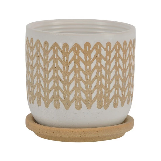 This hand painted planter has an Aztec design. Finished both inside and out it looks great with or without a plant. Works well with a neutral palette.Sagebrook Home has been formed from a love of design, a commitment to service and a dedication to quality. They create and import fashion forward items in the most popular design styles. Backed with years of experience in the textile field, They are now providing a complete Home decor story. the combination of wall decor, furniture, lighting and Home accessories are all coordinated with textiles to provide a complete Home look. Sagebrook Home is committed to providing the best Home dΓ©cor and accent pieces at value prices. Item Dimensions:5x5x5/Color: Brown Materials: Ceramic Category: Outdoor Decor, Planters Product Theme/Style/Trend: Contemporary Country Of Manfacture: Cn