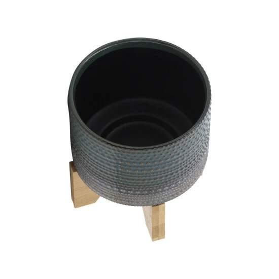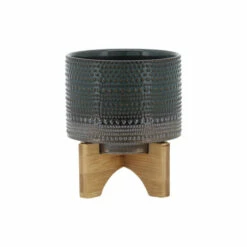 Looking for contemporary and simple planters? This stylish planter with stand is just the right fit to your home. The planter is constructed from high-quality ceramic, with a green and brown hue and dotted design on the outside.Sagebrook Home has been formed from a love of design, a commitment to service and a dedication to quality. They create and import fashion forward items in the most popular design styles. Backed with years of experience in the textile field, They are now providing a complete Home decor story. the combination of wall decor, furniture, lighting and Home accessories are all coordinated with textiles to provide a complete Home look. Sagebrook Home is committed to providing the best Home décor and accent pieces at value prices. Item Dimensions:6x6x7/Planter 1 Only Dims:6x6x4/Color: Green Materials: Ceramic, Bamboo Wood Category: Outdoor Decor, Planters Product Theme/Style/Trend: Contemporary Country Of Manfacture: Cn