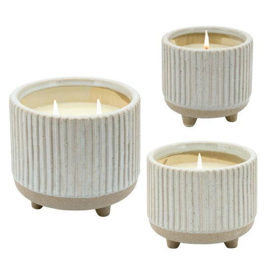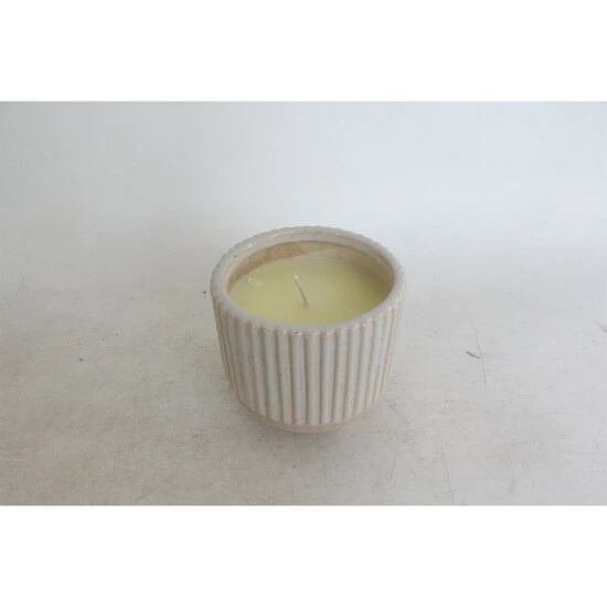 Enjoy a pleasant scent of vanilla in your home with this stunning ridged candle. Featuring a ceramic container that can double as a planter once the candle burns out. Perfect for any home with a pristine design.Sagebrook Home has been formed from a love of design, a commitment to service and a dedication to quality. They create and import fashion forward items in the most popular design styles. Backed with years of experience in the textile field, They are now providing a complete Home decor story. the combination of wall decor, furniture, lighting and Home accessories are all coordinated with textiles to provide a complete Home look. Sagebrook Home is committed to providing the best Home dΓ©cor and accent pieces at value prices. Item Dimensions:5x5x4/Color: Ivory/beige Materials: Ceramic, Soy Category: Candles, Indoor Product Theme/Style/Trend: Contemporary Country Of Manfacture: Cn