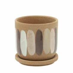 Decorate your home with a stunning striped planter. Featuring a native inspired design and earthy colors to bring out all the natural tones in your home. With a saucer to catch any dripping water before it ruins your floor or carpet. The perfect addition to any casual home decor!Sagebrook Home has been formed from a love of design, a commitment to service and a dedication to quality. They create and import fashion forward items in the most popular design styles. Backed with years of experience in the textile field, They are now providing a complete Home decor story. the combination of wall decor, furniture, lighting and Home accessories are all coordinated with textiles to provide a complete Home look. Sagebrook Home is committed to providing the best Home décor and accent pieces at value prices. Item Dimensions:5x5x5/Color: Brown Materials: Ceramic Category: Outdoor Decor, Planters Product Theme/Style/Trend: Contemporary Country Of Manfacture: Cn
