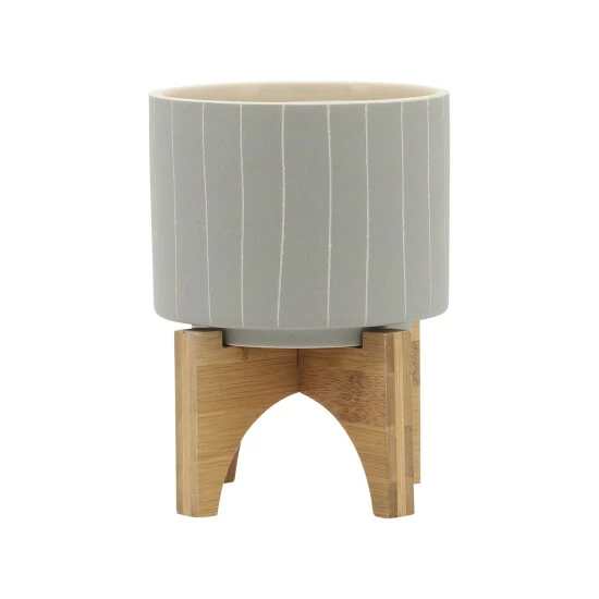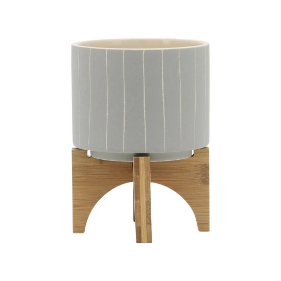 Bring home a touch of elegance and style with this stunning striped planter. Featuring a wooden stand to give your plant height and a grand showcasing! In a beautiful tan color to add an earthy touch of colors to your interior decor!Sagebrook Home has been formed from a love of design, a commitment to service and a dedication to quality. They create and import fashion forward items in the most popular design styles. Backed with years of experience in the textile field, They are now providing a complete Home decor story. the combination of wall decor, furniture, lighting and Home accessories are all coordinated with textiles to provide a complete Home look. Sagebrook Home is committed to providing the best Home dรฉcor and accent pieces at value prices. Item Dimensions:5x5x7/Color: Brown Materials: Ceramic Category: Outdoor Decor, Planters Product Theme/Style/Trend: Contemporary Country Of Manfacture: Cn