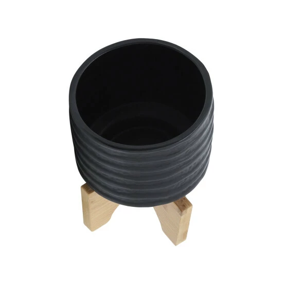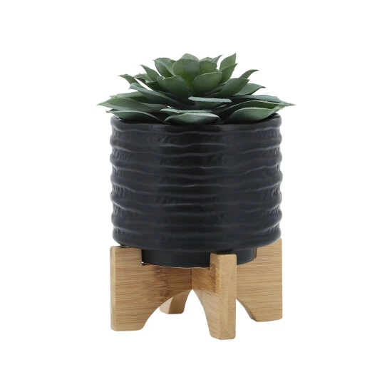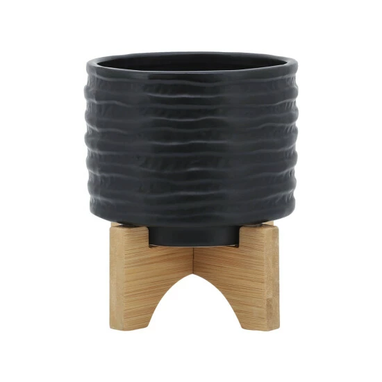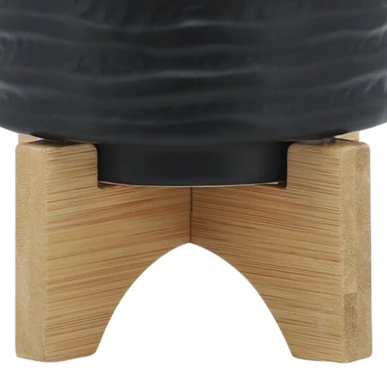 6″ Textured Planter With Stand Black. Complete Your Mid-Century-Modern Home Decor With This Attractive Textured Planter. A Solid Wood Stand Keeps The Container Elevated, And The Planters Design Perfectly Compliments Any Existing Interior-Design Style.Sagebrook Home has been formed from a love of design, a commitment to service and a dedication to quality. They create and import fashion forward items in the most popular design styles. Backed with years of experience in the textile field, They are now providing a complete Home decor story. the combination of wall decor, furniture, lighting and Home accessories are all coordinated with textiles to provide a complete Home look. Sagebrook Home is committed to providing the best Home dรฉcor and accent pieces at value prices. Item Dimensions:6x6x5/Planter 1 Only Dims:6x6x5/Color: Black Materials: Ceramic, Bamboo Wood Category: Outdoor Decor, Planters Product Theme/Style/Trend: Contemporary Country Of Manfacture: Cn