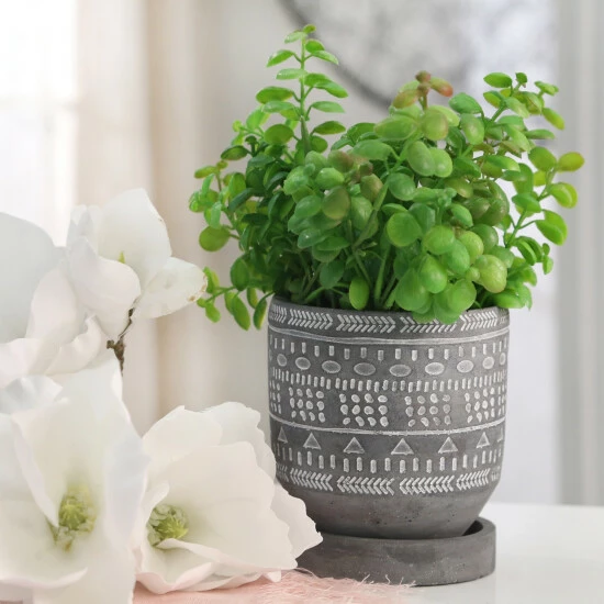 Cement planter with etched pattern and attached saucer works well both indoor and outdoor. The etched pattern gives it texture and design. Perfect for any home or office.Sagebrook Home has been formed from a love of design, a commitment to service and a dedication to quality. They create and import fashion forward items in the most popular design styles. Backed with years of experience in the textile field, They are now providing a complete Home decor story. the combination of wall decor, furniture, lighting and Home accessories are all coordinated with textiles to provide a complete Home look. Sagebrook Home is committed to providing the best Home dΓ©cor and accent pieces at value prices. Item Dimensions:5x5x5/Color: Gray Materials: Cement Category: Outdoor Decor, Planters Product Theme/Style/Trend: Contemporary Country Of Manfacture: Cn