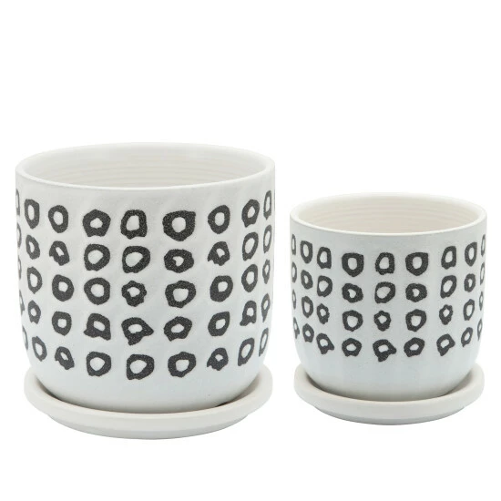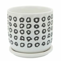 6″ Aztec Planter with Saucer in Black. This is sure to bring a modern feel to your home. This is made of ceramic with a Aztec pattern, crΓ¨me base with a black pattern. This planter does have drainage holes. This is sure to be a great addition to your planter collection. Item Dimensions:6x6x6/Color: Black Materials: Ceramic, Rubber Wood Category: Outdoor Decor, Planters Product Theme / Style / Trend: Contemporary Country Of Manfacture: Cn