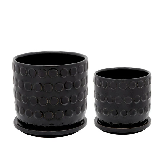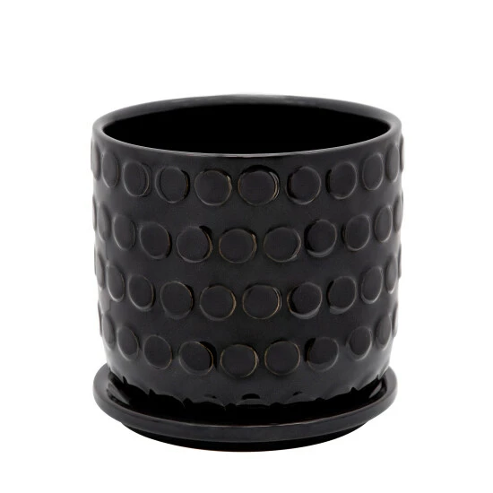 6″ Bubble Planter with Saucer, black. Made of Ceramic with bubble pattern, black in color with semi gloss finish. Comes with drainage holes and attached water-catching saucers. Planters and Saucers are both black.Sagebrook Home has been formed from a love of design, a commitment to service and a dedication to quality. They create and import fashion forward items in the most popular design styles. Backed with years of experience in the textile field, They are now providing a complete Home decor story. the combination of wall decor, furniture, lighting and Home accessories are all coordinated with textiles to provide a complete Home look. Sagebrook Home is committed to providing the best Home décor and accent pieces at value prices. Item Dimensions:6x6x6/Color: Black Materials: Ceramic Category: Outdoor Decor, Planters Product Theme / Style / Trend: Contemporary Country Of Manfacture: Cn