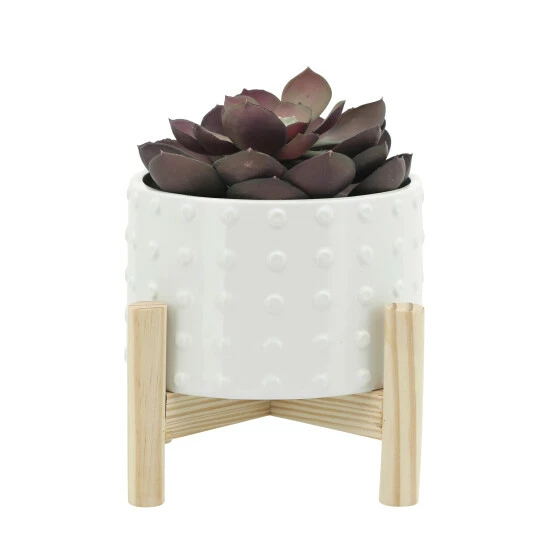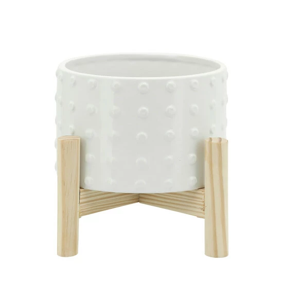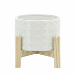 Embrace the industrial chic look with these fabulous on trend planters. The planters sleek design allows for small space styling perfect for a terrace! The wood stand is made of premium solid wood.Sagebrook Home has been formed from a love of design, a commitment to service and a dedication to quality. They create and import fashion forward items in the most popular design styles. Backed with years of experience in the textile field, They are now providing a complete Home decor story. the combination of wall decor, furniture, lighting and Home accessories are all coordinated with textiles to provide a complete Home look. Sagebrook Home is committed to providing the best Home dΓ©cor and accent pieces at value prices. Item Dimensions:6x6x7/Planter 1 Only Dims:6x6x4/Color: White Materials: Ceramic, Pine Wood Category: Outdoor Decor, Planters Product Theme/Style/Trend: Contemporary Country Of Manfacture: Cn