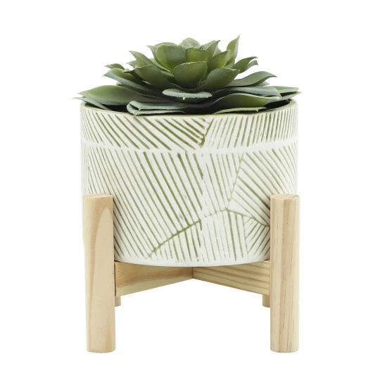 Enjoy your favorite plants in this ceramic planter by a beautiful plant stand. Plant stand is a perfect fit for this planter. Molded with high pressure ceramic, the pot is durable and easy to clean. Combine with cactus plants to create your ultimate tabletop garden.Sagebrook Home has been formed from a love of design, a commitment to service and a dedication to quality. They create and import fashion forward items in the most popular design styles. Backed with years of experience in the textile field, They are now providing a complete Home decor story. the combination of wall decor, furniture, lighting and Home accessories are all coordinated with textiles to provide a complete Home look. Sagebrook Home is committed to providing the best Home décor and accent pieces at value prices. Item Dimensions:6x6x7/Planter 1 Only Dims:6x6x4/Color: Green Materials: Ceramic, Pine Wood Category: Outdoor Decor, Planters Product Theme/Style/Trend: Contemporary Country Of Manfacture: Cn