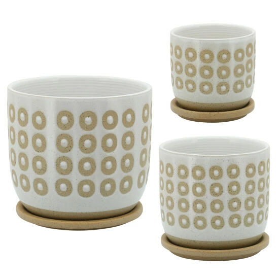 Astound your visitors with your sense of abstract style in home decor. This ceramic planters features a modern inspired design, using geometric shapes and lines to add a fun touch to any room. Perfect as an inside planter, with a saucer to avoid any spills on your floor, carpet or furniture. Item Dimensions:6x6x6/Color: White Materials: Ceramic Category: Outdoor Decor, Planters Product Theme/Style/Trend: Contemporary Country Of Manfacture: Cn