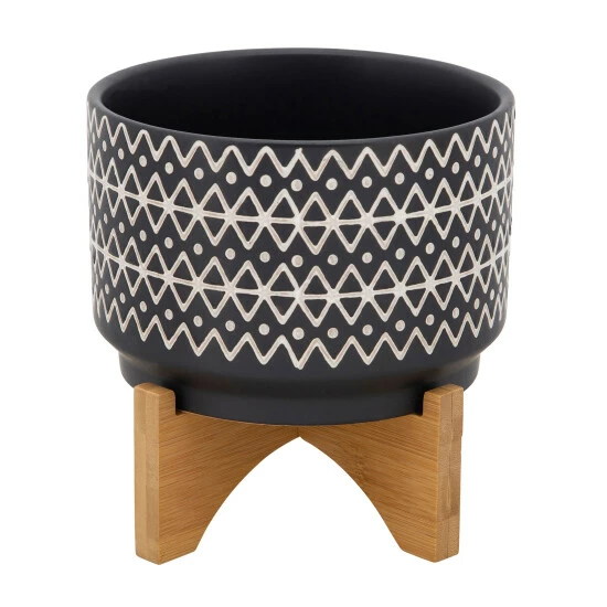 7″ Abstract Planter On Stand, Black. Place This Black Matte, Abstract, Ceramic Planter In Any Space To Enhance The Room With A Peaceful Environment. This Ceramic Planter Has An Elegant Stylish Matte Grey As The Base And Crรจme Abstract Design. It Sits Atop Of A Wooden Stand.Sagebrook Home has been formed from a love of design, a commitment to service and a dedication to quality. They create and import fashion forward items in the most popular design styles. Backed with years of experience in the textile field, They are now providing a complete Home decor story. the combination of wall decor, furniture, lighting and Home accessories are all coordinated with textiles to provide a complete Home look. Sagebrook Home is committed to providing the best Home dรฉcor and accent pieces at value prices. Item Dimensions:7x7x8/Planter 1 Only Dims:7x7x5/Color: Black Materials: Ceramic Category: Outdoor Decor, Planters Product Theme / Style / Trend: Contemporary Country Of Manfacture: Cn
