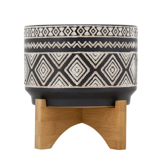 7′ Diamond Planter On Stand, Black. Place This Black Matte, Diamond Design, Ceramic Planter In Any Space To Enhance The Room With A Peaceful Environment. This Ceramic Planter Has An Elegant Stylish Matte Gray As The Base And CrΓ¨me Diamond Design. It Sits Atop Of A Wooden Stand.Sagebrook Home has been formed from a love of design, a commitment to service and a dedication to quality. They create and import fashion forward items in the most popular design styles. Backed with years of experience in the textile field, They are now providing a complete Home decor story. the combination of wall decor, furniture, lighting and Home accessories are all coordinated with textiles to provide a complete Home look. Sagebrook Home is committed to providing the best Home dΓ©cor and accent pieces at value prices. Item Dimensions:7x7x8/Planter 1 Only Dims:7x7x5/Color: Black Materials: Ceramic Category: Outdoor Decor, Planters Product Theme / Style / Trend: Contemporary Country Of Manfacture: Cn