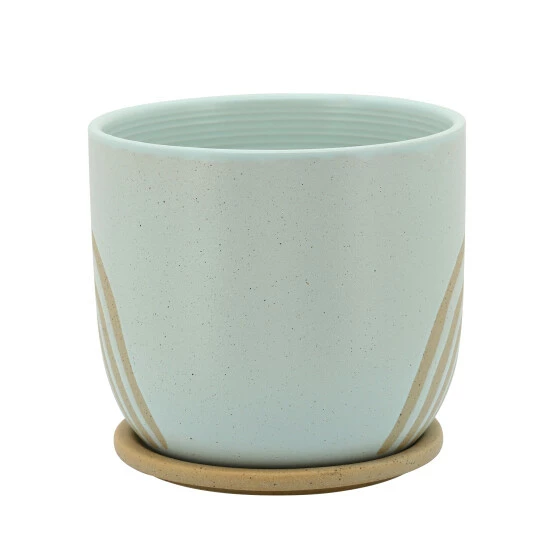 Astound your visitors with your sense of abstract style in home decor. This ceramic planters features a modern inspired design, using geometric shapes and lines to add a fun touch to any room. Perfect as an inside planter, with a saucer to avoid any spills on your floor, carpet or furniture. Item Dimensions:8x8x7/Color: Green Materials: Ceramic Category: Outdoor Decor, Planters Product Theme / Style / Trend: Contemporary Country Of Manfacture: Cn