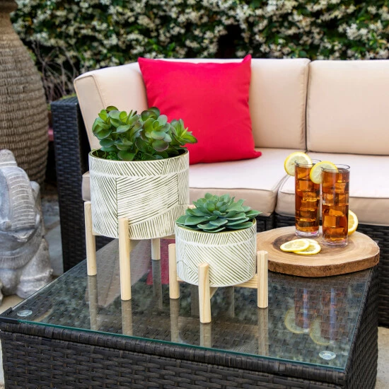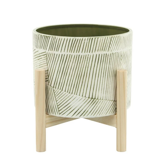 Enjoy your favorite plants in this ceramic planter by a beautiful plant stand. Plant stand is a perfect fit for this planter. Molded with high pressure ceramic, the pot is durable and easy to clean. Combine with cactus plants to create your ultimate tabletop garden.Sagebrook Home has been formed from a love of design, a commitment to service and a dedication to quality. They create and import fashion forward items in the most popular design styles. Backed with years of experience in the textile field, They are now providing a complete Home decor story. the combination of wall decor, furniture, lighting and Home accessories are all coordinated with textiles to provide a complete Home look. Sagebrook Home is committed to providing the best Home dรฉcor and accent pieces at value prices. Item Dimensions:8x8x9/Planter 1 Only Dims:8x8x7/Color: Green Materials: Ceramic, Pine Wood Category: Outdoor Decor, Planters Product Theme / Style / Trend: Contemporary Country Of Manfacture: Cn