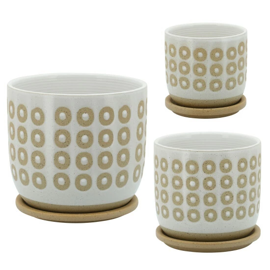 Astound your visitors with your sense of abstract style in home decor. This ceramic planters features a modern inspired design, using geometric shapes and lines to add a fun touch to any room. Perfect as an inside planter, with a saucer to avoid any spills on your floor, carpet or furniture. Item Dimensions:8x8x7/Color: White Materials: Ceramic Category: Outdoor Decor, Planters Product Theme / Style / Trend: Contemporary Country Of Manfacture: Cn