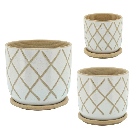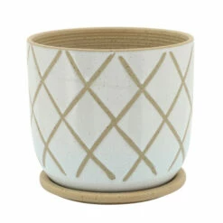 Astound your visitors with your sense of abstract style in home decor. This ceramic planters features a modern inspired design, using geometric shapes and lines to add a fun touch to any room. Perfect as an inside planter, with a saucer to avoid any spills on your floor, carpet or furniture. Item Dimensions:8x8x7/Color: White Materials: Ceramic Category: Outdoor Decor, Planters Product Theme / Style / Trend: Contemporary Country Of Manfacture: Cn