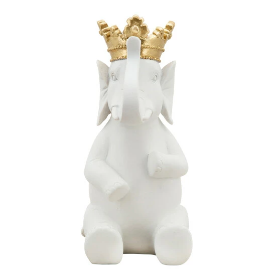 Wisdom and loyalty are represented by all elephants, an idea that will always be welcomed to your abode. Bring a stunning figurine of these gentle giants to your favorite room. This figuring features a white matte finish and a shiny gold crown. Coming together to be an epitome of elegance and nature. Item Dimensions:5x4x8/Color: White Materials: Polyresin Category: Decorative Accessories, Figurines Product Theme / Style / Trend: Contemporary Country Of Manfacture: Cn