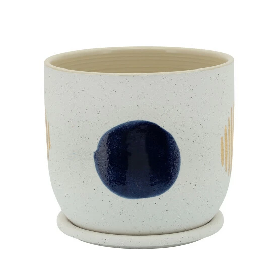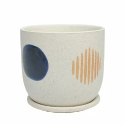 Astound your visitors with your sense of abstract style in home decor. This ceramic planters features a funky inspired design, using geometric shapes and lines to add a fun touch to any room. Perfect as an inside planter, with a saucer to avoid any spills on your floor, carpet or furniture. Item Dimensions:8x8x7/Color: White Materials: Ceramic Category: Outdoor Decor, Planters Product Theme / Style / Trend: Contemporary Country Of Manfacture: Cn