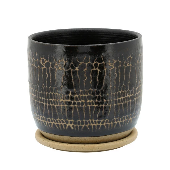 Display your favorite plants with this stunning glazed black planter. Featuring a stunning abstract pattern within the outer finish. Creating a mystic feeling in any room this planter is placed. A great way to get your friends and family’s interest.Sagebrook Home has been formed from a love of design, a commitment to service and a dedication to quality. They create and import fashion forward items in the most popular design styles. Backed with years of experience in the textile field, They are now providing a complete Home decor story. the combination of wall decor, furniture, lighting and Home accessories are all coordinated with textiles to provide a complete Home look. Sagebrook Home is committed to providing the best Home dΓ©cor and accent pieces at value prices. Item Dimensions:8x8x7/Color: Black Materials: Ceramic Category: Outdoor Decor, Planters Product Theme / Style / Trend: Contemporary Country Of Manfacture: Cn