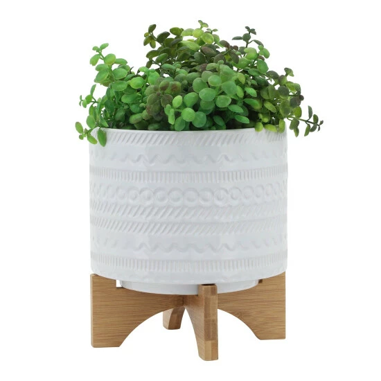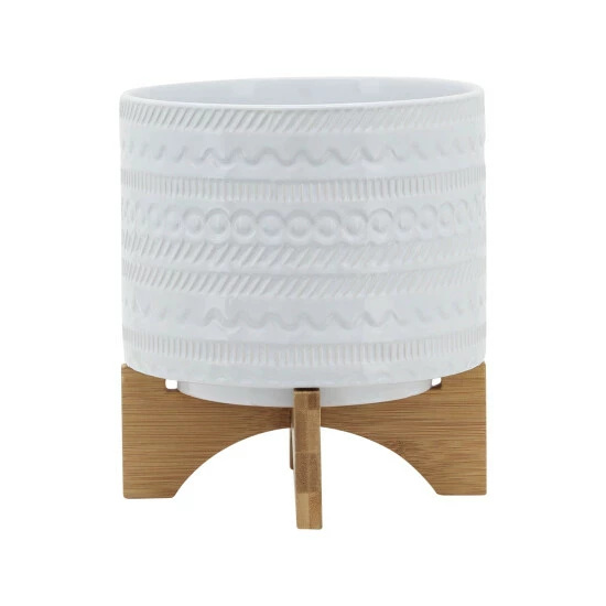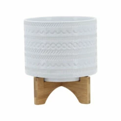 8″ Tribal Planter W/ Wood Stand, White. Adorn Your Space With This Tribal Planter. This Planter On Wood stand Will Help Upgrade Your Plant Game In Style. Made Of Ceramic, This Has A Glossy White Finish. This Planter Will Add A Bit Of Chic Nature To Your Living Space. It Will Help You Start Your Own Little Garden Indoors! Item Dimensions:8x8x7/Planter 1 Only Dims:8x8x7/Color: White Materials: Ceramic Category: Outdoor Decor, Planters Product Theme/Style/Trend: Contemporary Country Of Manfacture: Cn