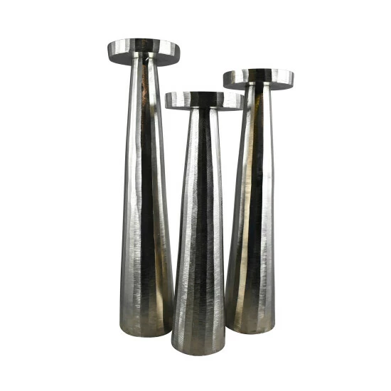 A traditional candle holder just got a makeover. Finished in modern silver, this version of a classic is drop dead gorgeous. Place it on a side table or an accent table solo, or in multiples. Pair it with the small matching candlestick.Sagebrook Home has been formed from a love of design, a commitment to service and a dedication to quality. They create and import fashion forward items in the most popular design styles. Backed with years of experience in the textile field, They are now providing a complete Home decor story. the combination of wall decor, furniture, lighting and Home accessories are all coordinated with textiles to provide a complete Home look. Sagebrook Home is committed to providing the best Home dΓ©cor and accent pieces at value prices. Item Dimensions:5x5x20/Color: Silver Materials: Aluminum Category: Candles, Candle Holders And Lanterns, Candle Holders And Tealights Product Theme/Style/Trend: Glam Country Of Manfacture: In