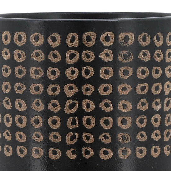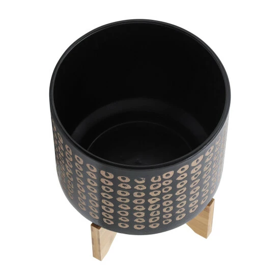 This hand painted planter gives a bold tribal feel. Finished both inside and out it looks great with or without a plant. Works well with a neutral pallet.Sagebrook Home has been formed from a love of design, a commitment to service and a dedication to quality. They create and import fashion forward items in the most popular design styles. Backed with years of experience in the textile field, They are now providing a complete Home decor story. the combination of wall decor, furniture, lighting and Home accessories are all coordinated with textiles to provide a complete Home look. Sagebrook Home is committed to providing the best Home décor and accent pieces at value prices. Item Dimensions:9.75×9.75×11.5/Planter 1 Only Dims:9.75×9.75×8.5/Color: Brown Materials: Ceramic, Wood, Rubber Wood Category: Outdoor Decor, Planters Product Theme/Style/Trend: Contemporary Country Of Manfacture: Cn