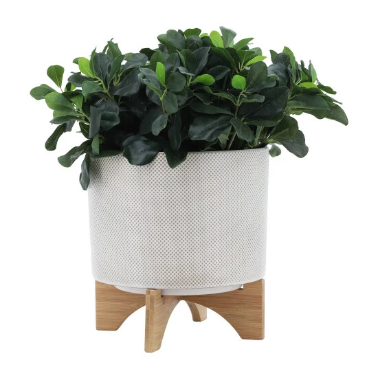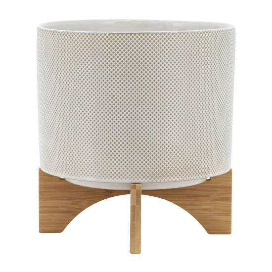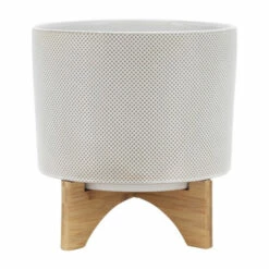 There is never a wrong place to decor your home with a polka dot planter pot. Beautiful ceramic round planter sitting on a wood stand with a tan polka dot design on the exterior . This stunning planter will look great anywhere you place it.Sagebrook Home has been formed from a love of design, a commitment to service and a dedication to quality. They create and import fashion forward items in the most popular design styles. Backed with years of experience in the textile field, They are now providing a complete Home decor story. the combination of wall decor, furniture, lighting and Home accessories are all coordinated with textiles to provide a complete Home look. Sagebrook Home is committed to providing the best Home décor and accent pieces at value prices. Item Dimensions:11x11x12/Planter 1 Only Dims:11x11x8/Color: White Materials: Ceramic, Bamboo Wood Category: Outdoor Decor, Planters Product Theme/Style/Trend: Contemporary Country Of Manfacture: Cn