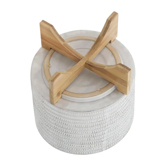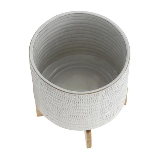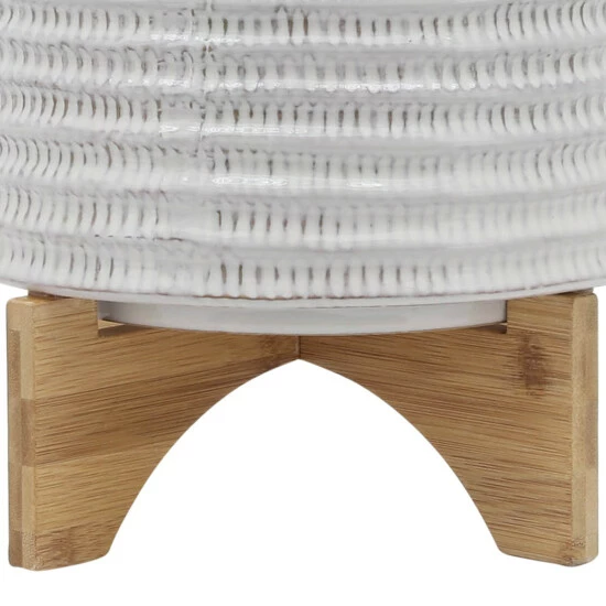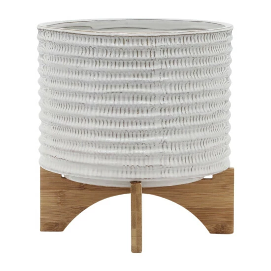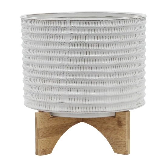 The beautiful ceramic planter with designs on the exterior, This stylish planter is the perfect decor for any piece of the room. This pot planter allows your blossoming flowers, lively greenery, succulents to flourish beautifully in this planter. These stunning planters will look great in your living room.Sagebrook Home has been formed from a love of design, a commitment to service and a dedication to quality. They create and import fashion forward items in the most popular design styles. Backed with years of experience in the textile field, They are now providing a complete Home decor story. the combination of wall decor, furniture, lighting and Home accessories are all coordinated with textiles to provide a complete Home look. Sagebrook Home is committed to providing the best Home dรฉcor and accent pieces at value prices. Item Dimensions:11x11x9/Planter 1 Only Dims:11x11x8/Color: Ivory/beige Materials: Ceramic, Wood, Bamboo Wood Category: Outdoor Decor, Planters Product Theme/Style/Trend: Contemporary Country Of Manfacture: Cn