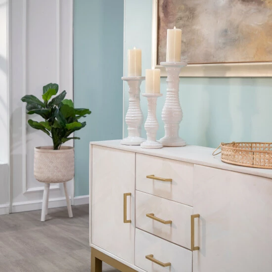 Bring a timeworn touch to any tabletop with this classic ceramic candle holder, the perfect pick for your display. Make a grand statement whether its lit or not. This ceramic candlestick is a perfect way to add a colorful ambiance to any room in the home day or night. Bring romantic ambiance into your home. Item Dimensions:6x6x15/Color: White Materials: Ceramic Category: Candles, Candle Holders And Lanterns, Candle Holders And Tealights Product Theme/Style/Trend: Casual Home Country Of Manfacture: Cn