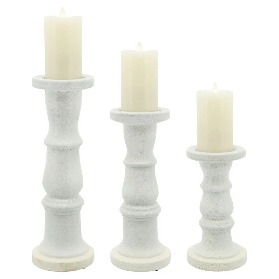 A ceramic candle holder in different heights for added dimension and depth to the arrangement. Candles are a wonderful way to bring ambient or romantic lighting to a room. But not all candles can be left to sit directly on your mantle, table or dresser. Thatโs when a candle holder, like this one, can come in handy. Item Dimensions:5.5×5.5×16/Color: Ivory/beige Materials: Ceramic Category: Candles, Candle Holders And Lanterns, Candle Holders And Tealights Product Theme / Style / Trend: Casual Home Country Of Manfacture: Cn